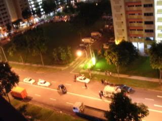 News headline. Late last night (or shall I say early this morning?), while I was trying to make my boy sleep, there was a loud shrieking screeching sound of tyres and a BOOM outside my window, down the street. Curious, I took a look. True enough, there was a collision at the wide empty street.