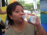 Sweaty and thirsty. I was given 2 bottles of free drinks. Despite feeling all funny and strange with the content, I gulped most of it for the first time at one go! Was so thirsty, I would drink it even if it's not treated! Wahaha! Verdict? It tastes like... er... water! :p