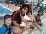 So since Daddy isn't around, Mummy tried her very best to make the day as fun and joyful as she deserves. We went to Downtown East and spent the time at Wild Wild Wet. It was so so fun! You know that big pail of Yakult filled with water? (third picture) When it's tilted, it pours out a whole load of water down. I managed to position myself right below at the centre and sat there for a while. It was so very very shiok!